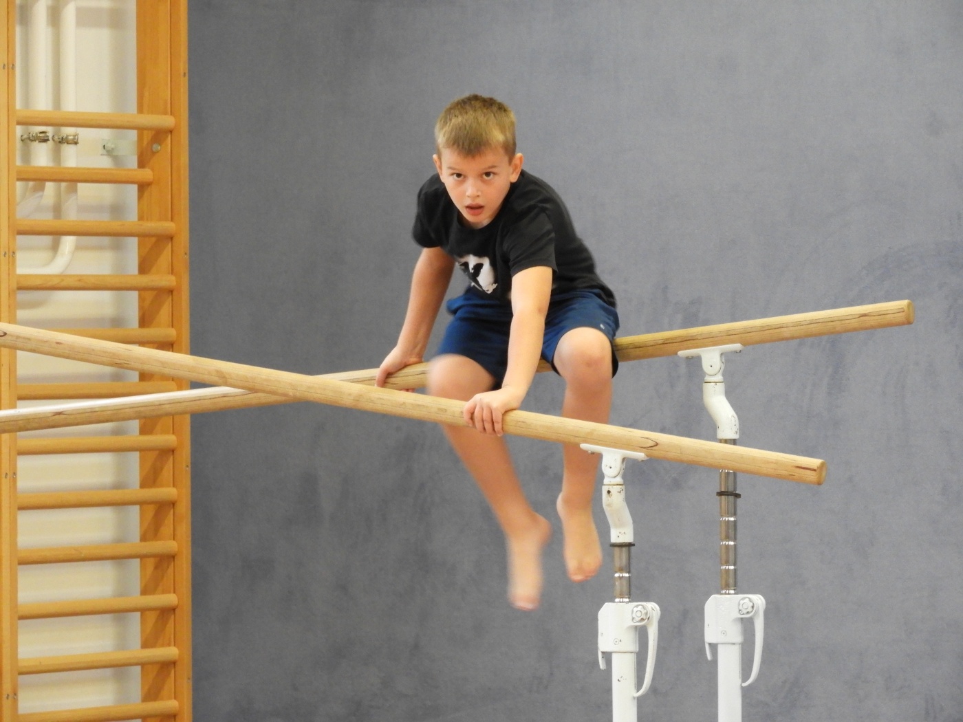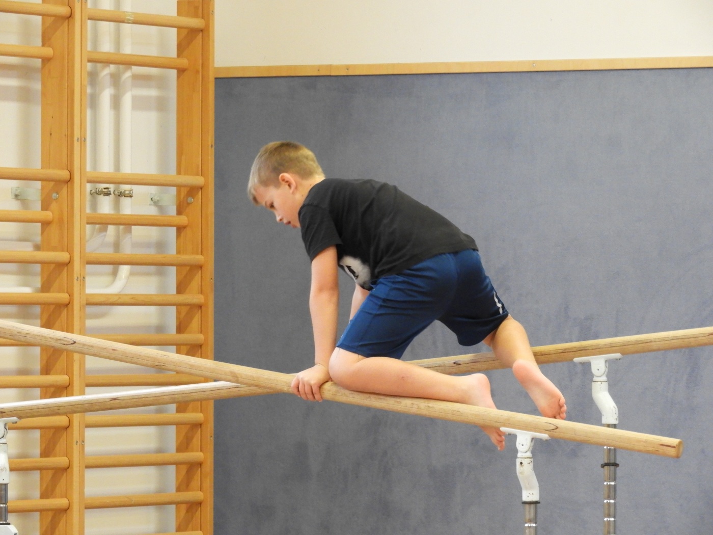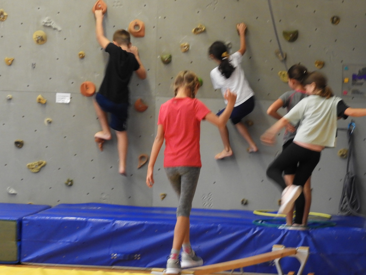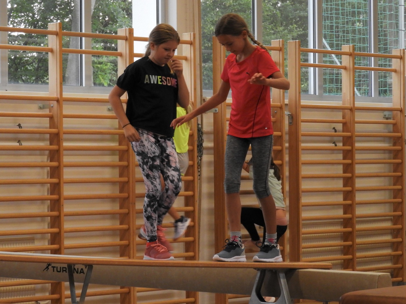 Die Schülerinnen und Schüler der 1a haben am Tag des Sports ihr Gleichgewicht beim Balancieren trainiert und ihre Muskulatur beim Klettern gestärkt.