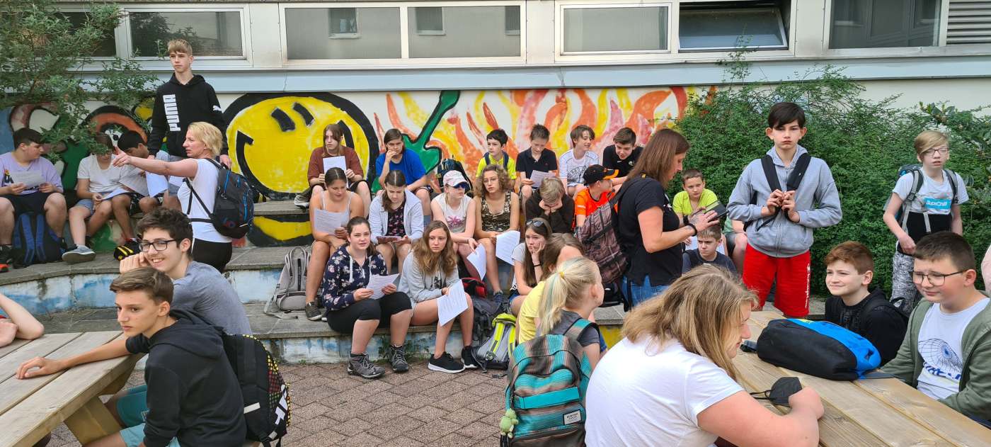 Am Freitag, den 20. Mai, wanderte die ganze Mittelschule auf vier verschiedenen Wegen, in 15 Kleingruppen zum Trainster Hochkreuz. Dabei bearbeitete jeder Jahrgang ein anderes wichtiges Thema unseres Lebens.