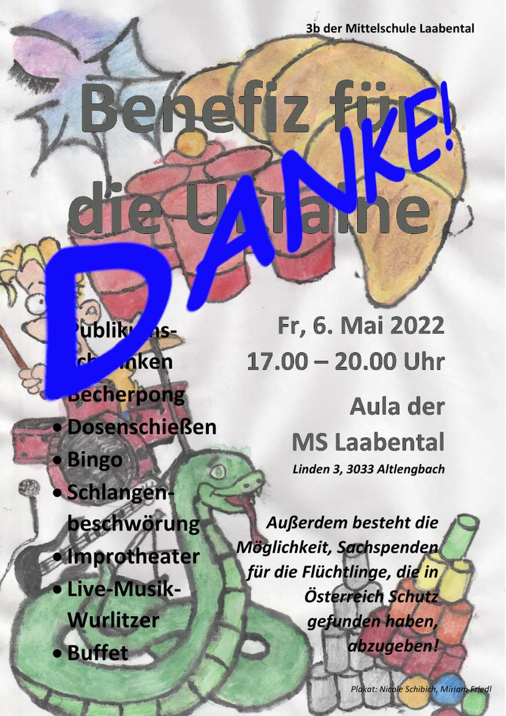 Die Schülerinnen und Schüler der 3b wollten ebenfalls unbedingt eine Hilfsaktion für die Ukraine starten. Herausgekommen ist ein kreativer Abend am Freitag, den 6. Mai.