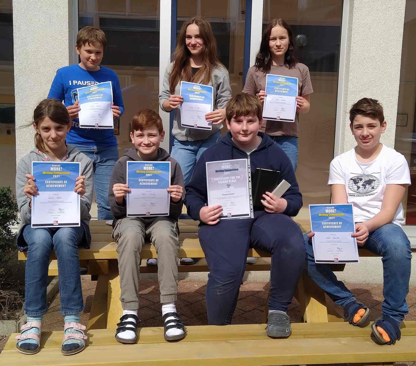 Sieben Schülerinnen und Schüler haben ihre "Cerificates of Achievement" erhalten. Diese Leistungsurkunden sind die Belohnung für die Teilnahme an der Writing Competition, die der Verlag Helbling für alle Schülerinnen und Schüler der 5. bis 8. Schulstufe in ganz Österreich veranstaltet hat.