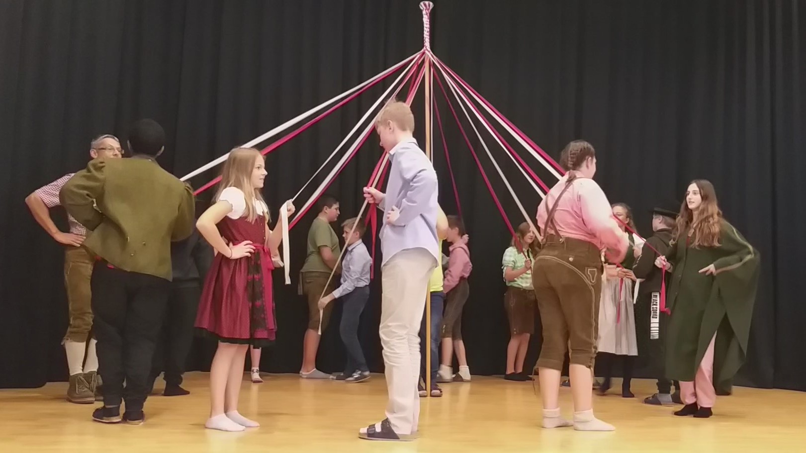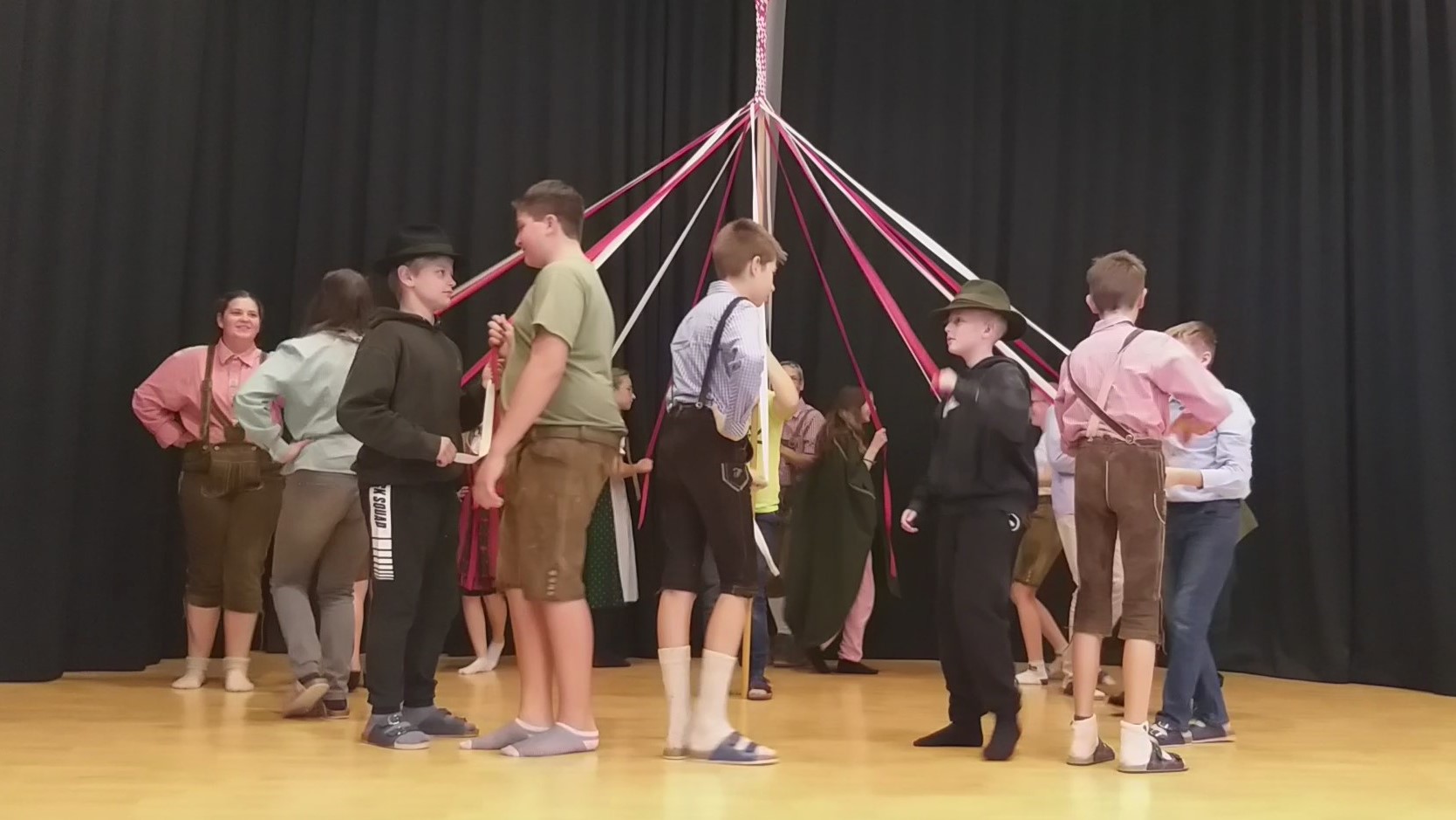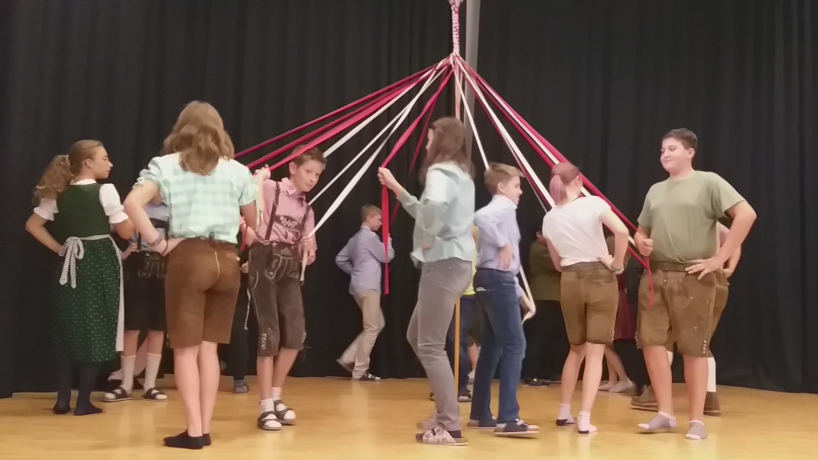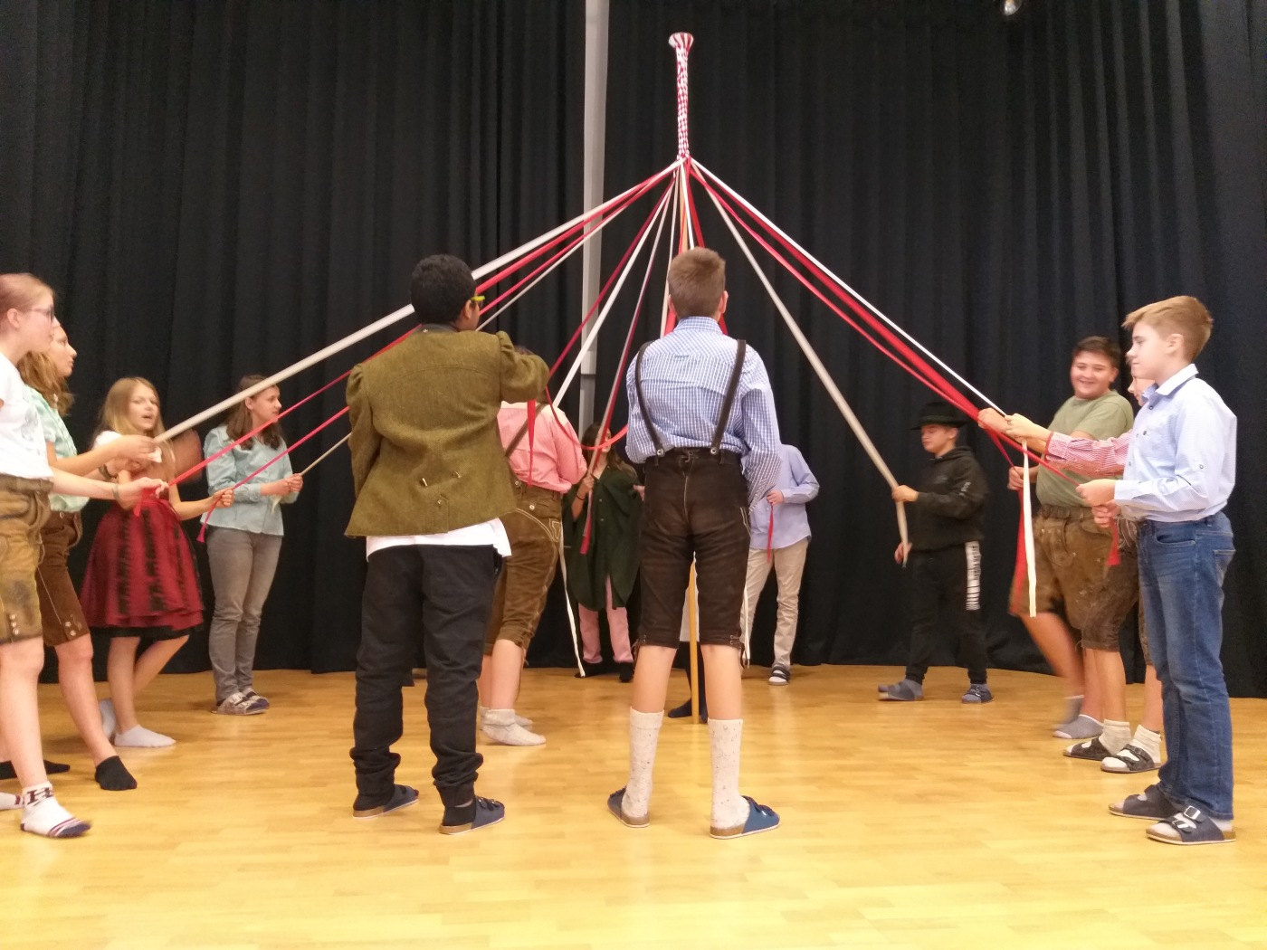 Die SchülerInnen der 3b haben als kleinen Ersatz für das entfallene Projekt zum Thema „Land und Leute“ im Musikunterricht den Bandltanz gelernt und ihn in traditioneller Kleidung und mit viel Spaß getanzt.