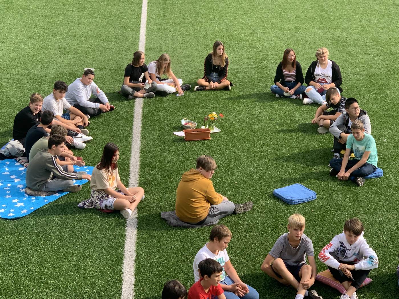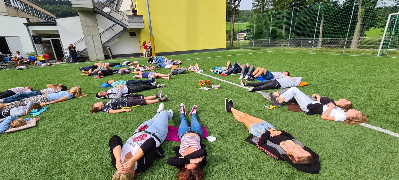 Die Schülerinnen und Schüler der 1b starteten dieses Schuljahr mit ihrer Klassevorständin und ihrem Klassenvorstand mit viel Bewegung im Freien.
