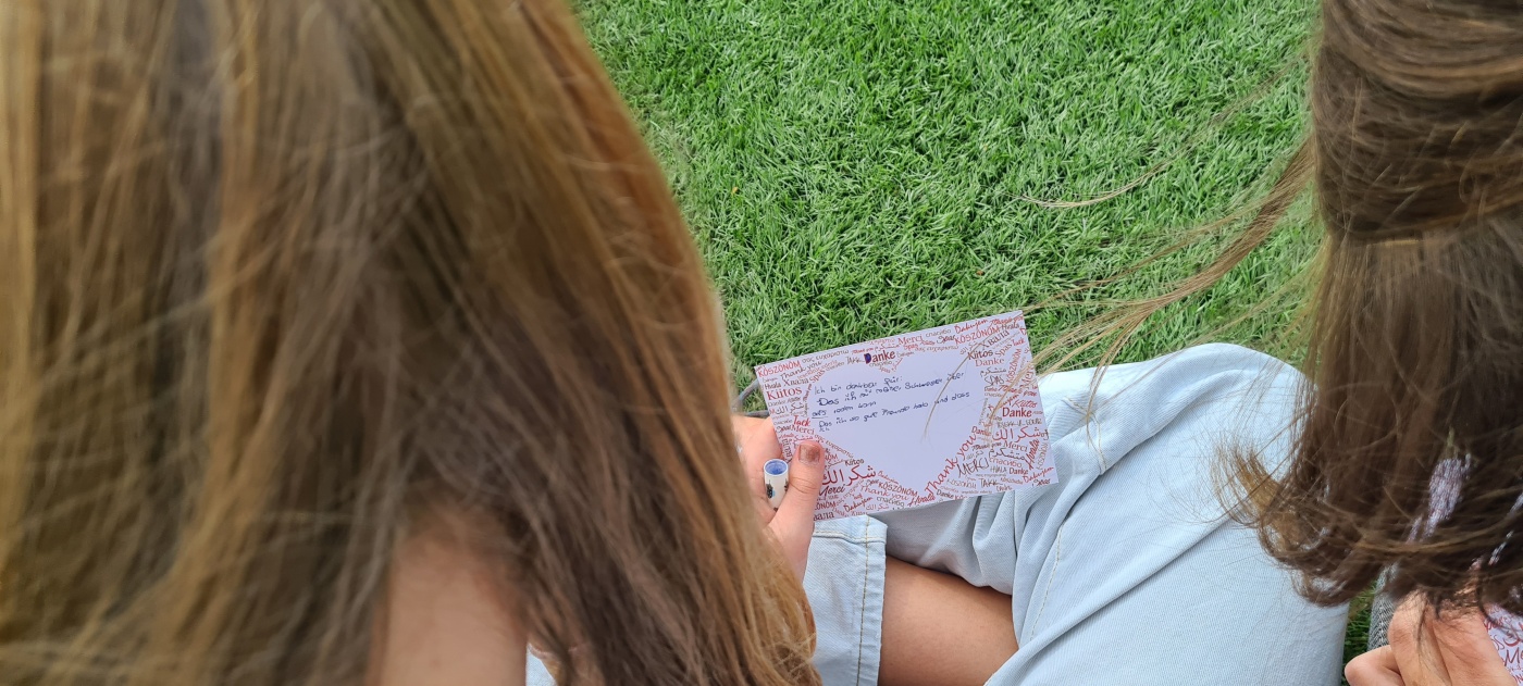 Zum Schluss sangen alle ein Lied, in welchem Danke in neun Sprachen vorkam. Danke, thank you, grazie, gracias, schukran, dzięki, ...