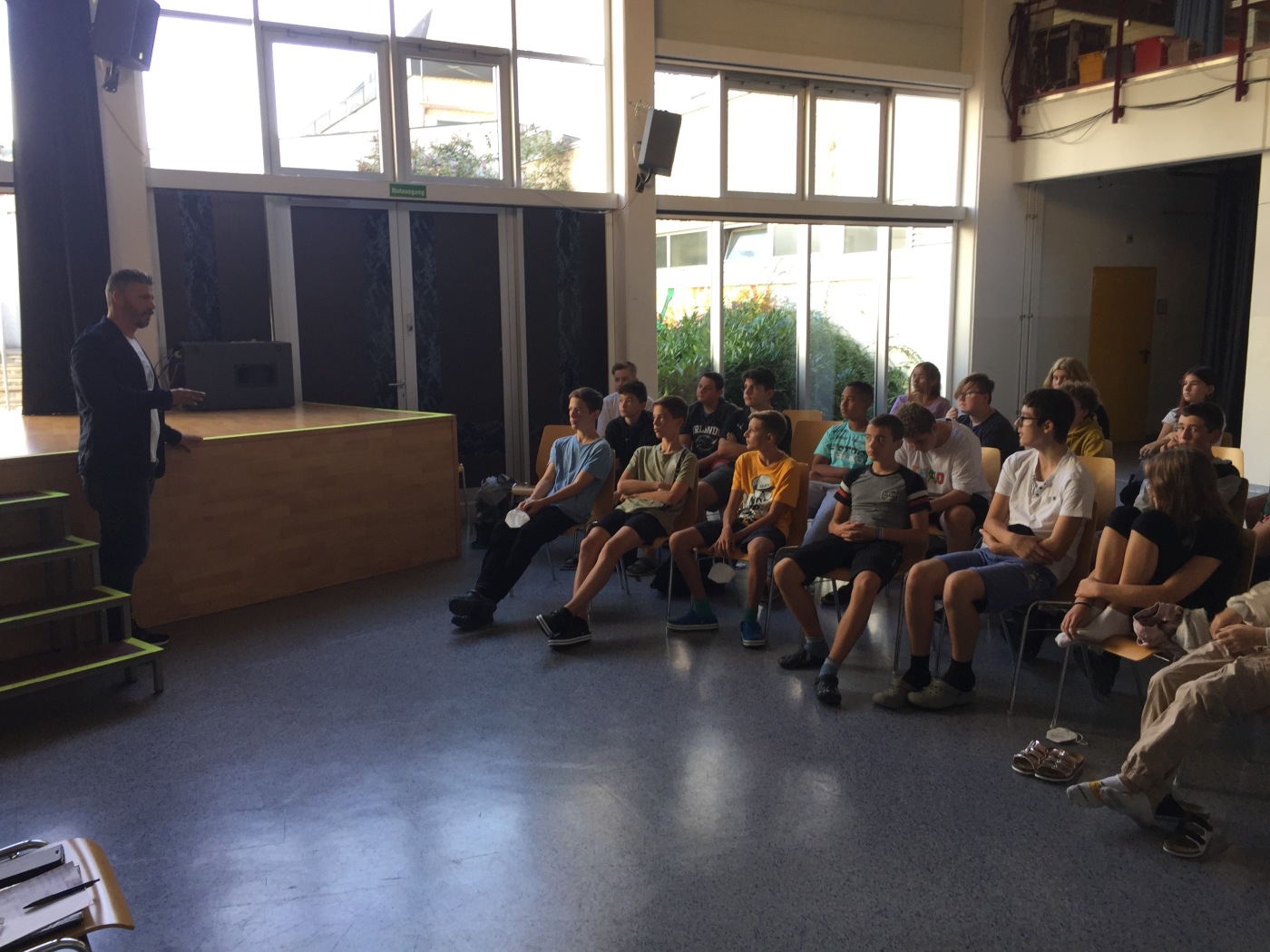 Alexander Grohs, Leiter von NEUSTART Niederösterreich, besuchte am 10.09.2021 die Mittelschule Laabental, um die Schülerinnen und Schüler der 3. und 4. Klassen über das Strafgesetz in Österreich zu informieren.