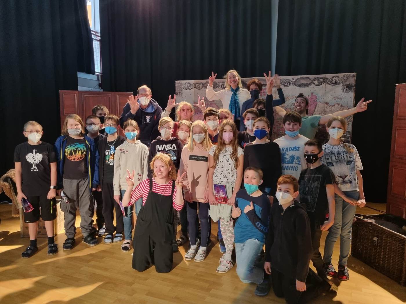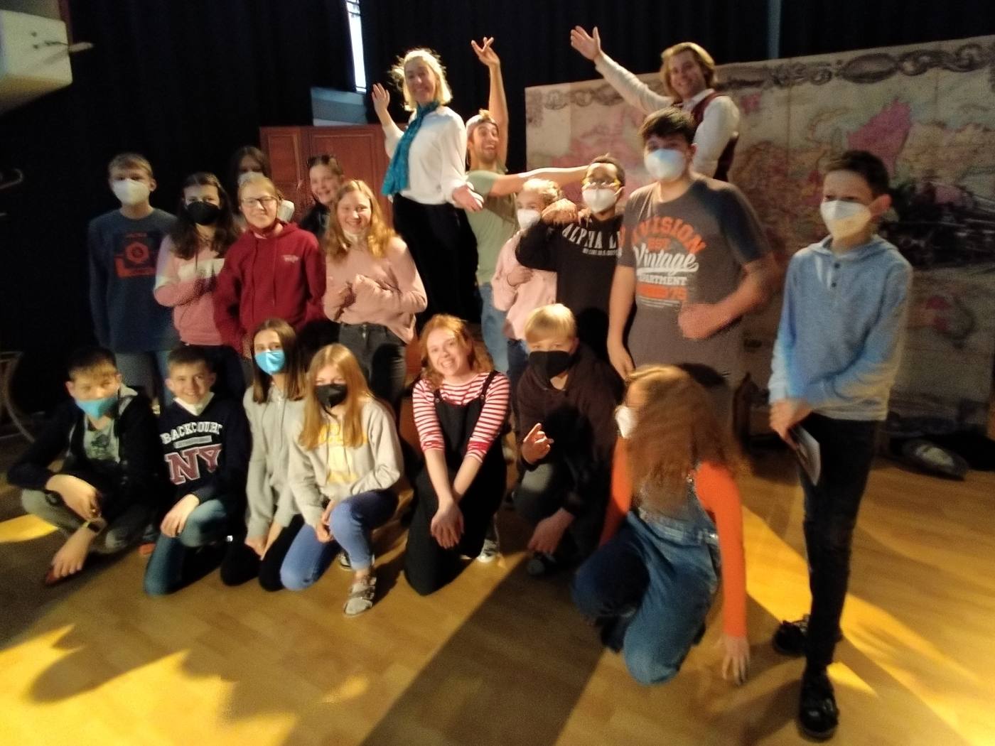 Die britischen Schauspielerinnen und Schauspieler begeisterten das Publikum mit einer tollen Performance und ihrer Freude, endlich wieder vor jungen Leuten auftreten zu dürfen. Als Draufgabe gab es Fotos, englische Gespräche mit den Akteuren und Autogramme.