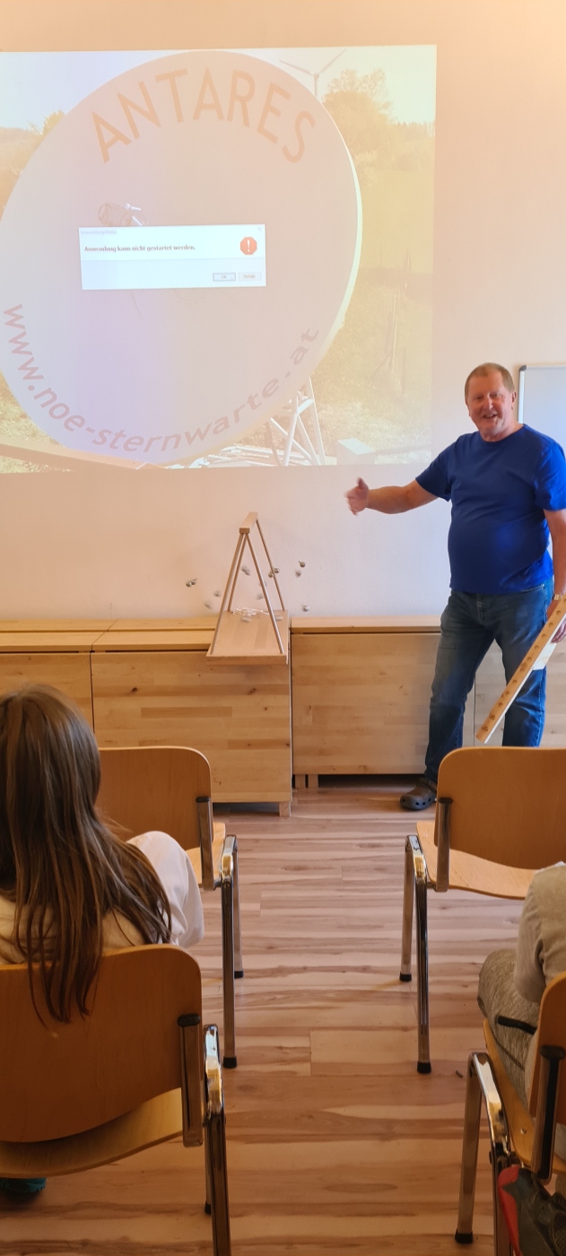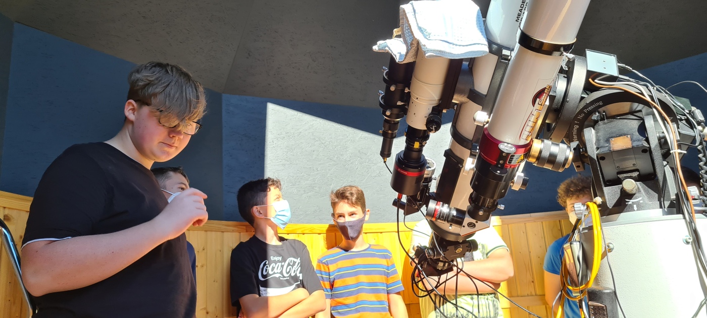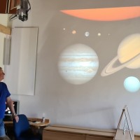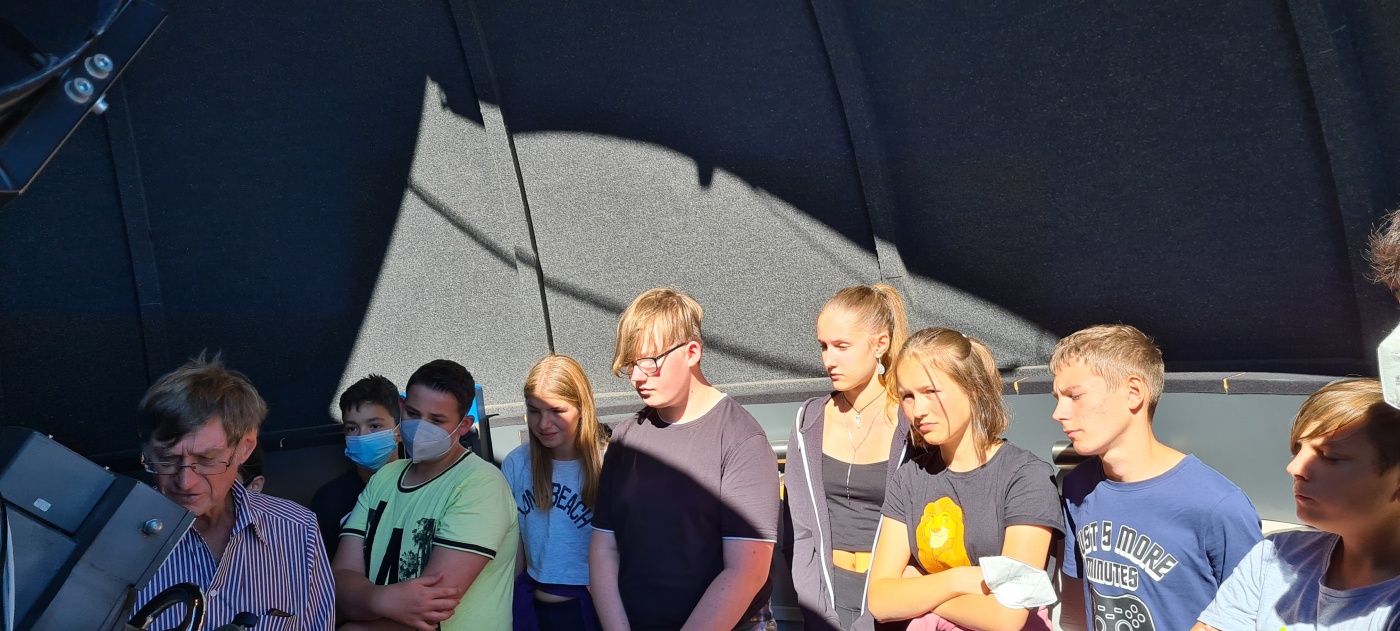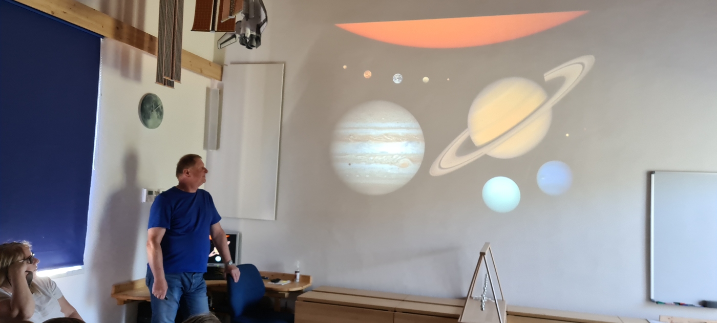 Mittels Teleskops konnten wir Faszinierendes auf der Sonne beobachten. Neben Sonnenflecken gab es auch riesige Protuberanzen. Anschließend reisten wir dank eines spannenden Vortrags in die Tiefen unseres Sonnensystems und weit hinaus bis zu anderen Galaxien.
