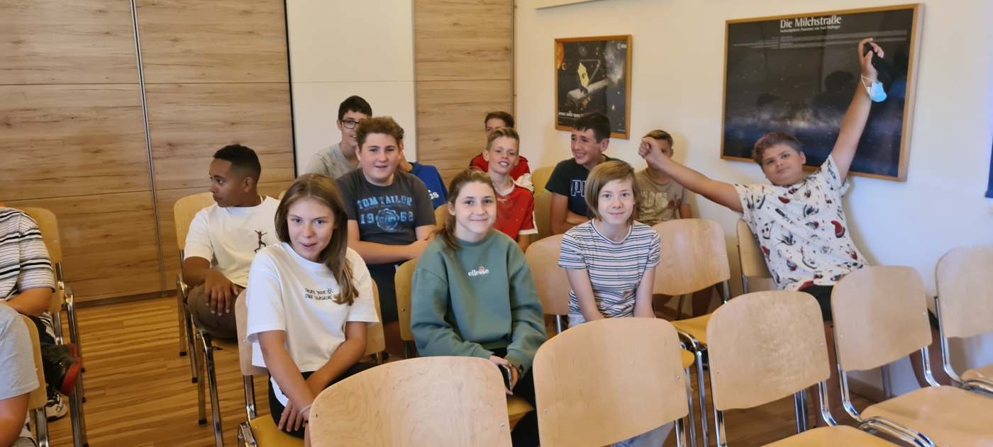 Die Schülerinnen und Schüler der 4. Klassen machten bei wunderschönem Wetter eine Wanderung zur Sternwarte Michelbach.