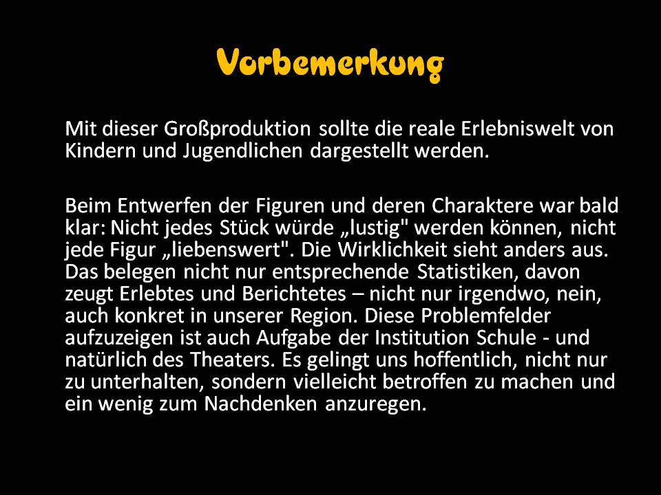 - Das Stück sollte die heutige Lebenswelt der Kinder widerspiegeln