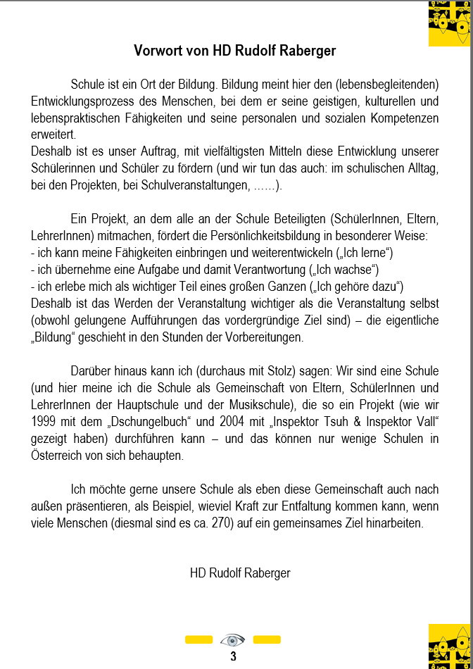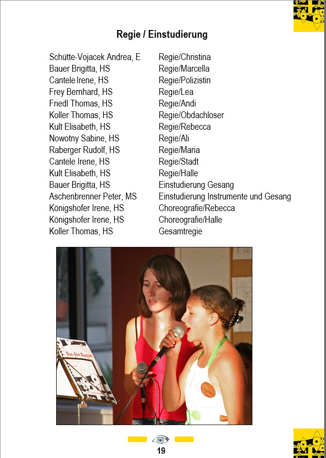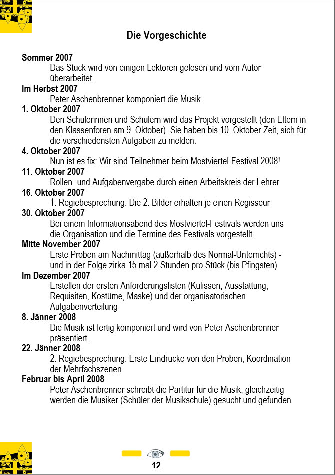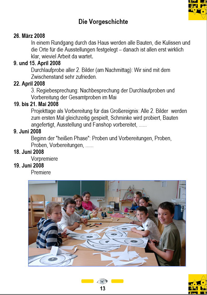 - Das Schulhaus und die unterrichtliche Arbeit (speziell im künstlerischen Bereich) sollten in das Projekt eingebunden werden