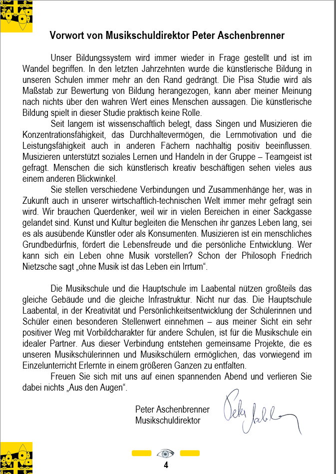 - Die erprobte Zusammenarbeit mit der Musikschule sollte fortgesetzt werden