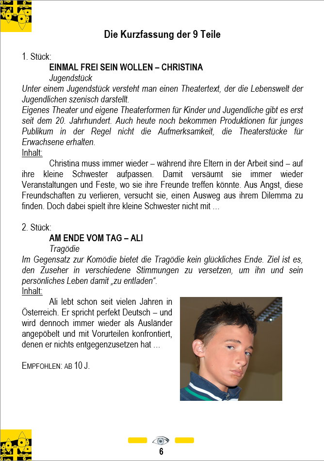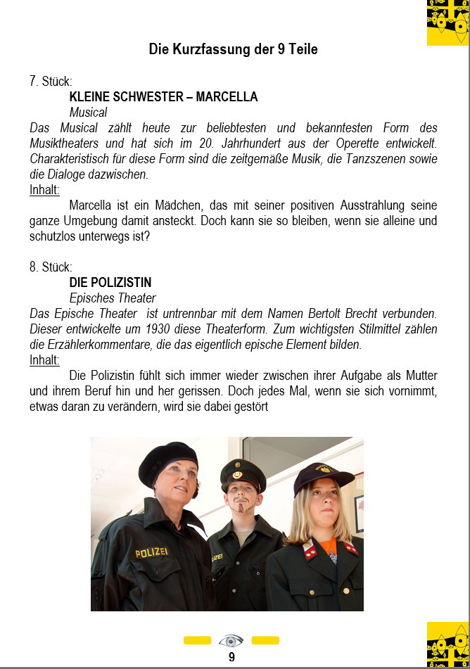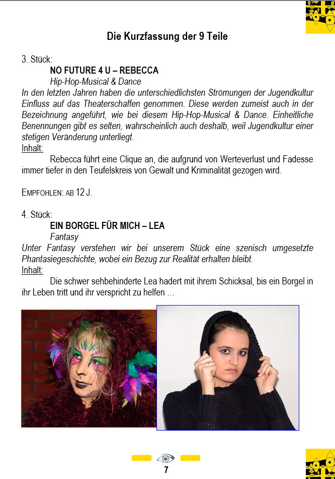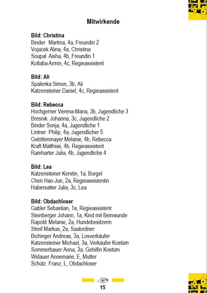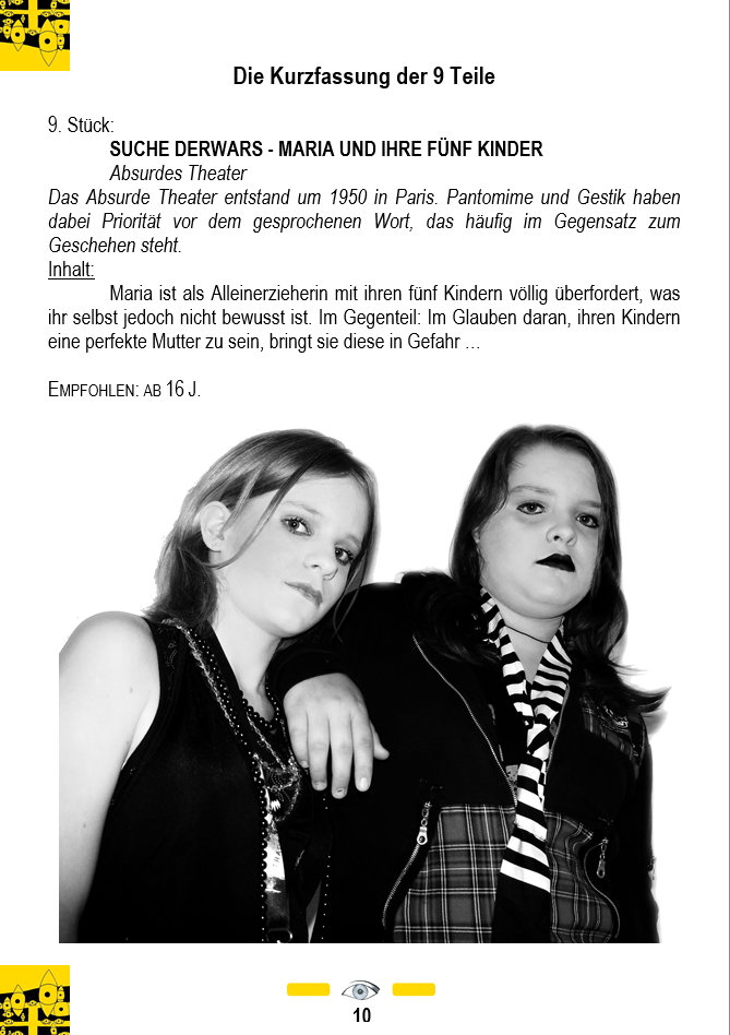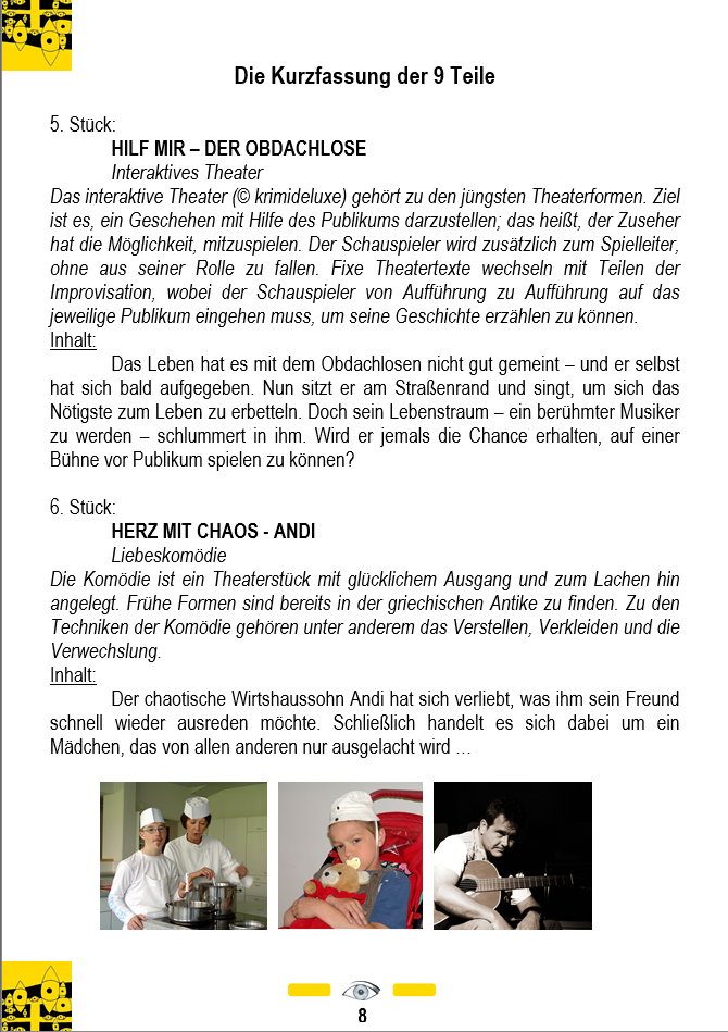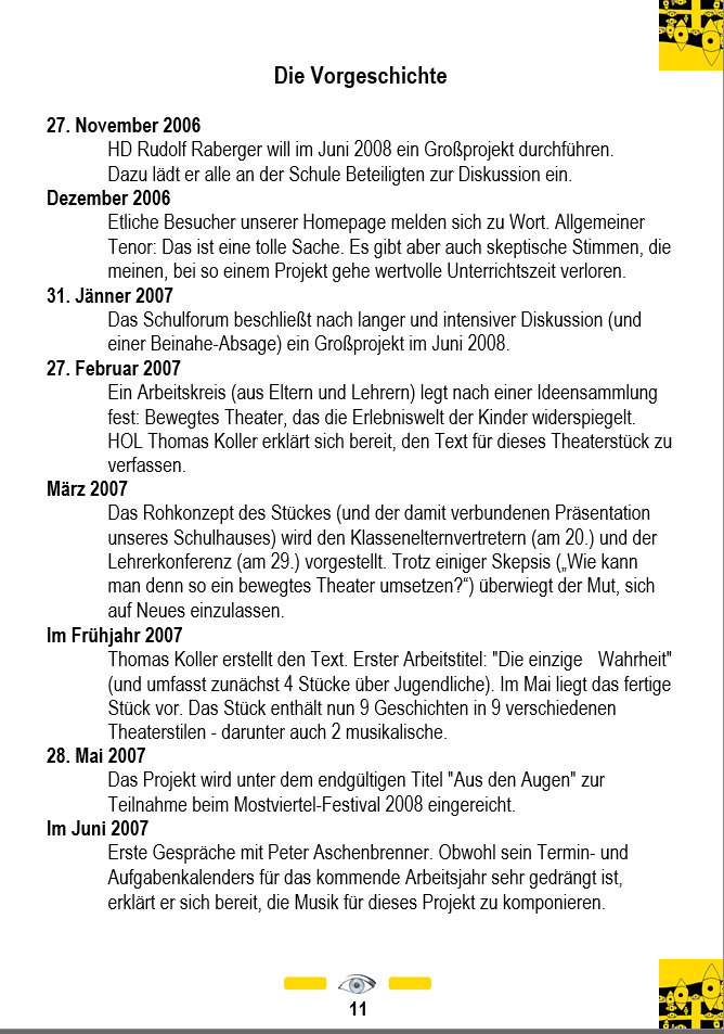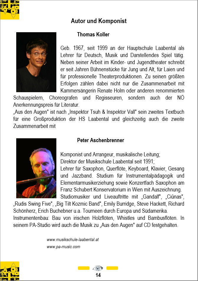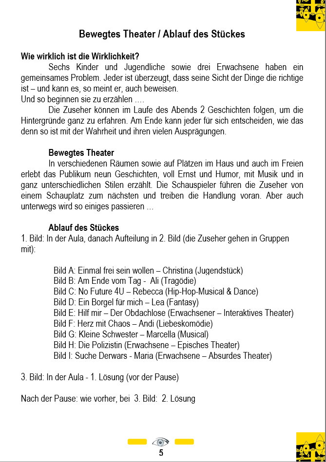 Zum besseren Verständnis der neuen Form des bewegten Theaters konnten unsere Zuseher sich vor Beginn sich über den Ablauf und die einzelnen Stücke von "Aus den Augen" informieren.