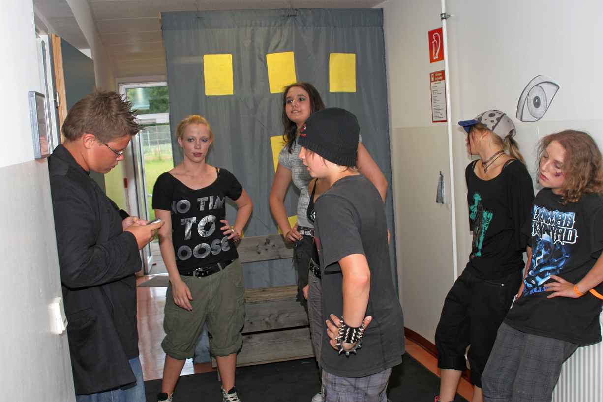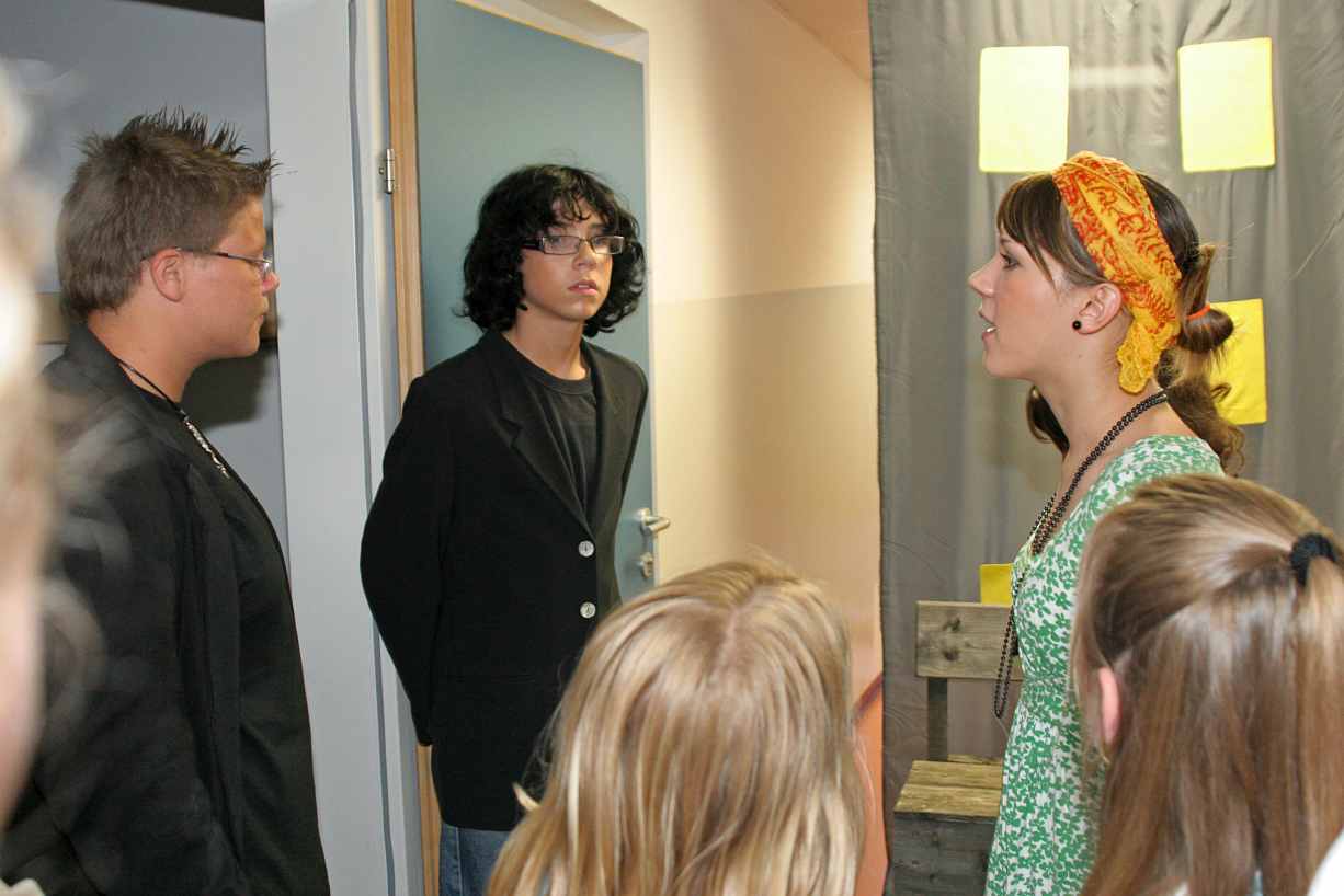 Deshalb kam das Vorbereitungsteam (das sich aus Eltern und Lehrern zusammensetzte) auch überraschend schnell auf die Idee des „Bewegten Theaters“, bei dem es die obigen Kriterien erfüllt sah. Und mit Thomas Koller unterrichtet ein Lehrer an unserer Schule, der viel Erfahrung im Schreiben und Inszenieren eines solchen Vorhabens hat. Peter Aschenbrenner, der Leiter der Musikschule, übernahm wie bei „Inspektor Tsuh & Inspektor Vall“ die Komposition und musikalische Gestaltung bei den beiden Stücken „Marcella“ und „Rebecca“.