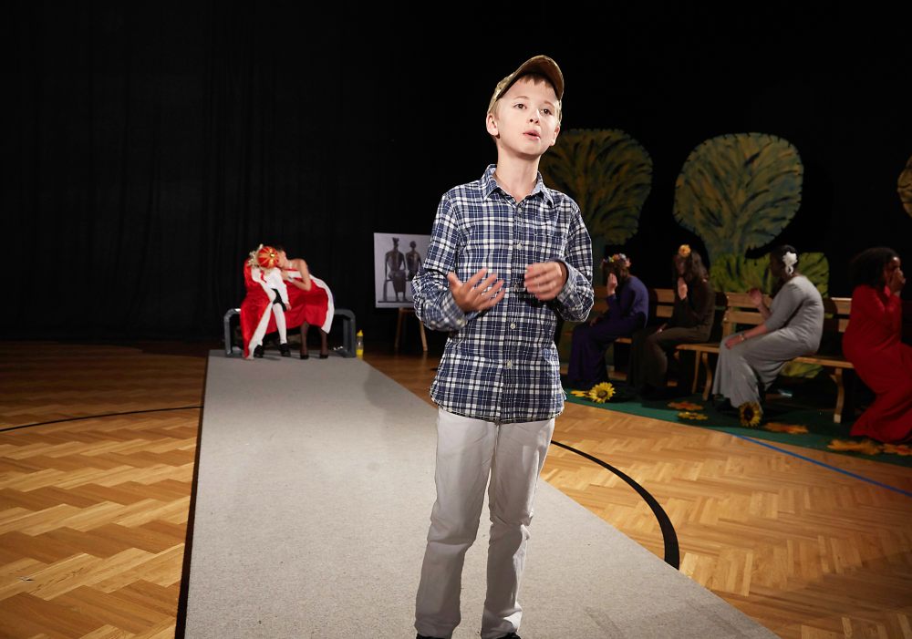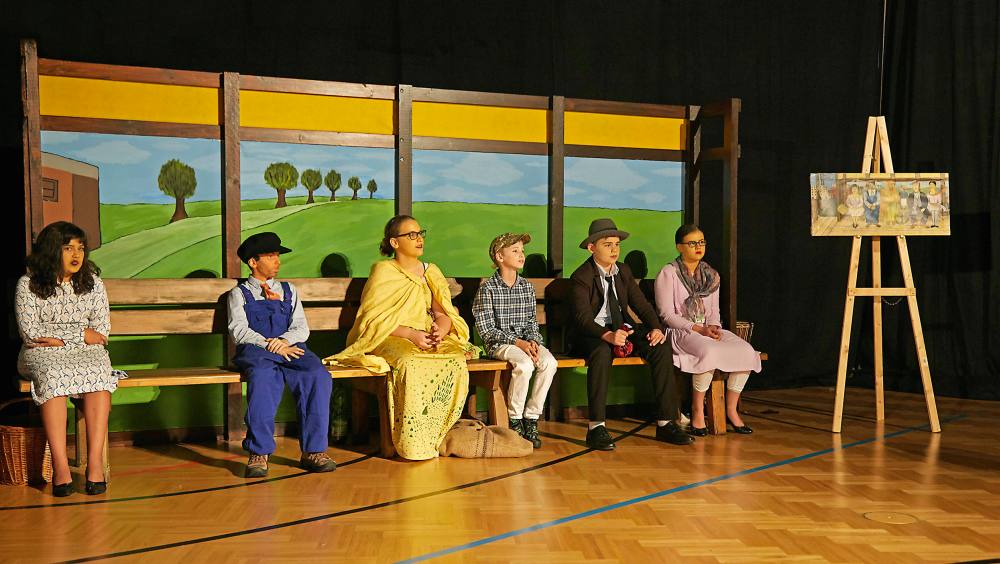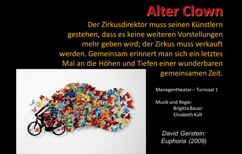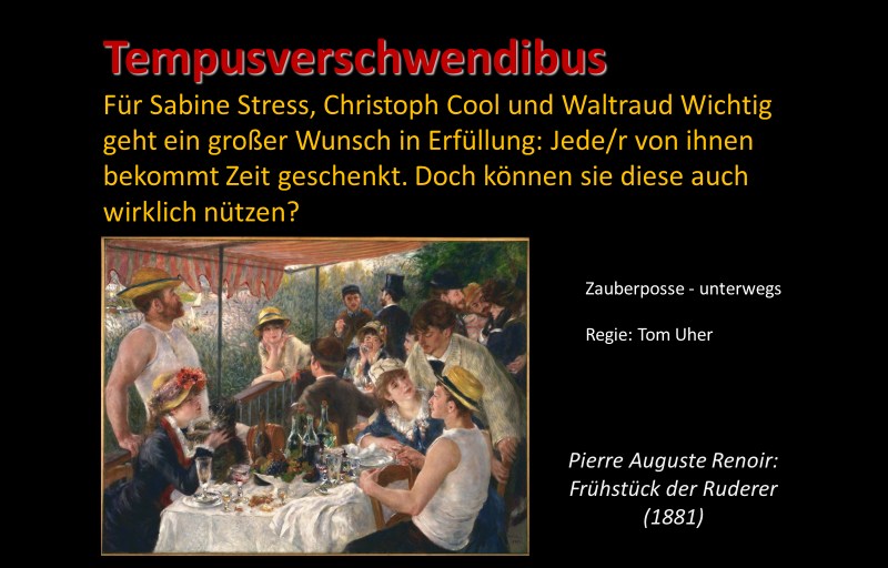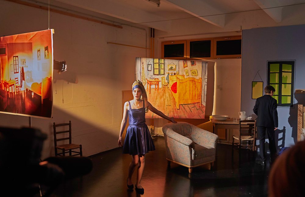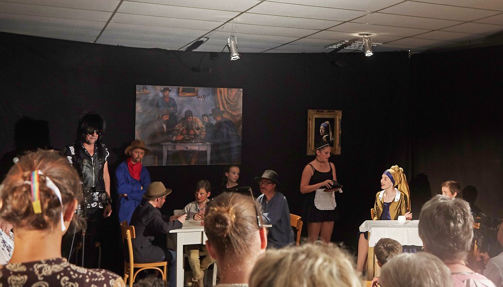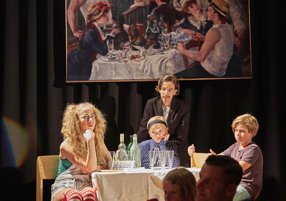 25 Bilder und Skulpturen der Kunstgeschichte (von Degas und van Gogh über Renoir bis hin zu Miro) bildeten den Ausgangspunkt für unsere Stücke - in Übergröße an den Wänden und zugleich davor von unseren SchauspielerInnen dargestellt.