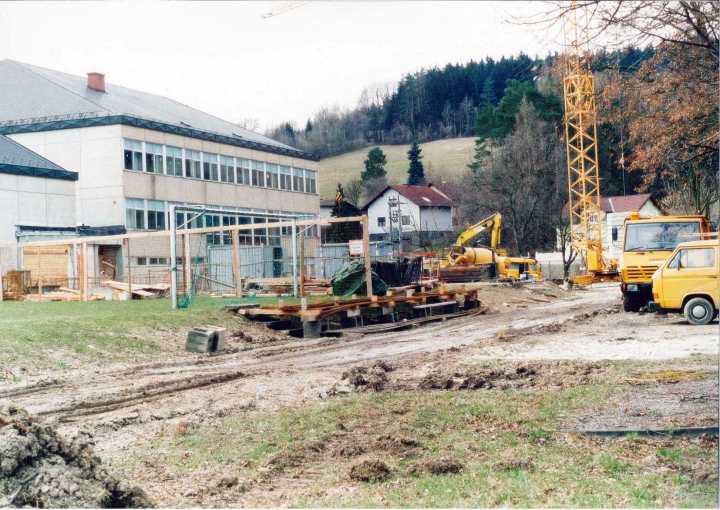 Im Jänner 1992 stellt Direktor Forst bei der Durchsicht der Gemeindelisten fest, dass auf Grund der Geburtenzahlen die Schule zu klein werden wird. Die umfangreichen Vorarbeiten dauern bis zum 20. März 1996 - da ist Baubeginn für den Zubau, der 35 Mill. Schilling kosten sollte. Die feierliche Eröffnung des Zubaus fand am 22. November 1997 in unserer neuen Aula statt.